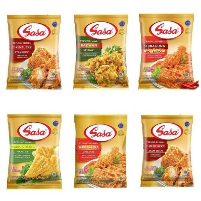 Tepung bumbu serbaguna original sasa adalah tepung bumbu praktis cepat saji yang lezat dan lengkap sehingga tidak perlu di tambah bumbu lain. KOMPOSISI : Tepung terigu, tepung tapioka, garam, penguat rasa mononatrium glutamat MSG, rempahrempah, pengembang natrium bikarbonat.