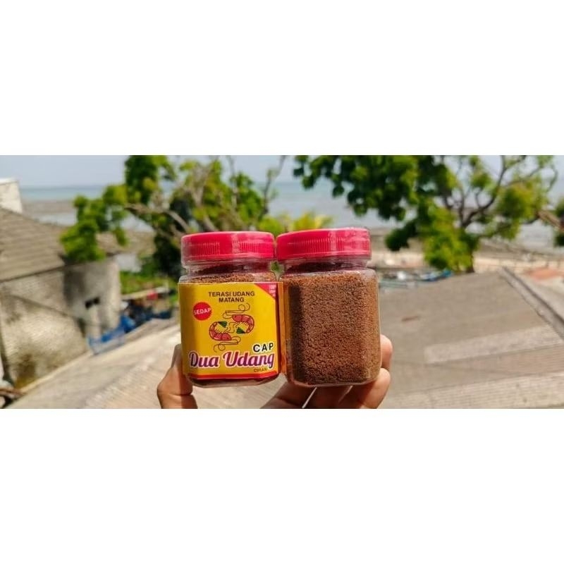 Terasi dua udang tersedia mentah dan matang.