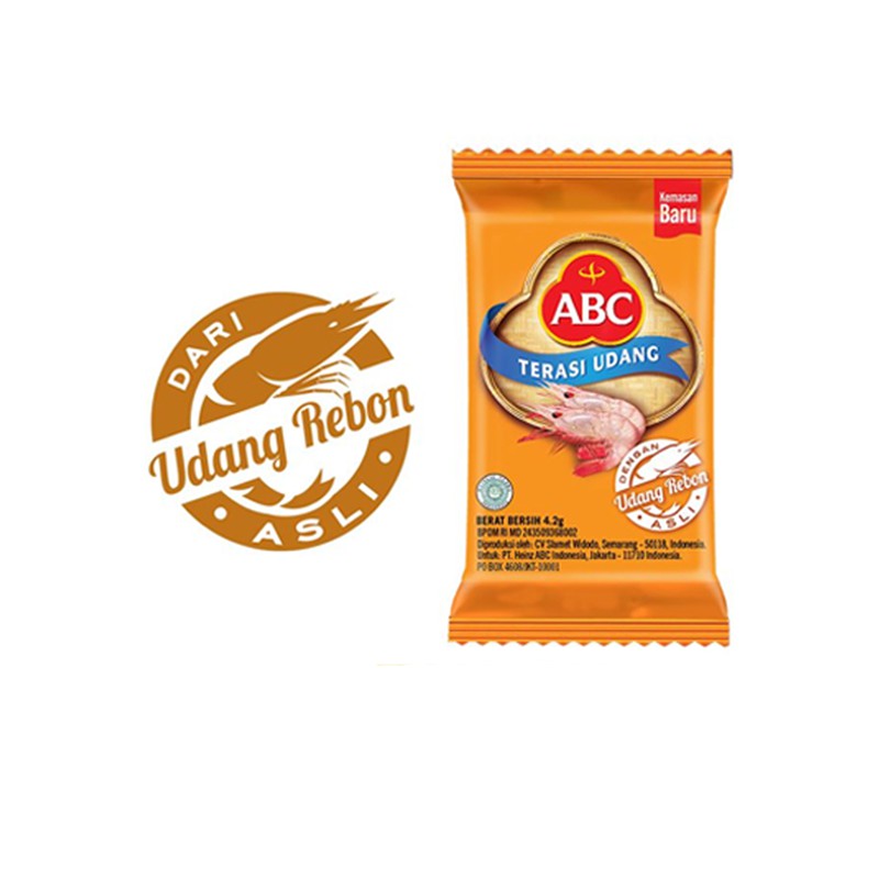 ABC Terasi Udang 4.2gr adalah bumbu terasi yang diolah dengan modern ini terbuat dari olahan udang rebon pilihan bercitra rasa khas indonesia. Sajikan setiap masakan terbaik untuk keluarga anda dengan memakai terasi udang ABC yang pasti enak dilidah.