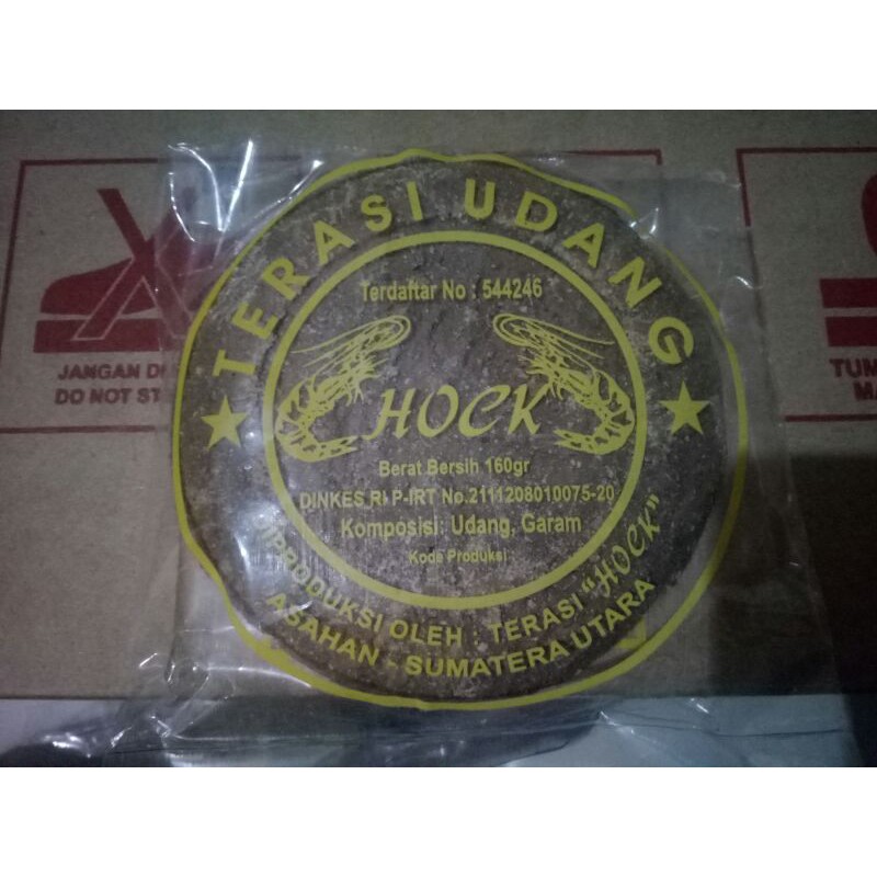 Terasi udang asli Hock berasal dari Bagan Asahan Sumatera Utara, terbuat dari bahan udang bermutu tanpa campuran ikan dan sotong sehingga menghasilkan rasa masakan yg enak, hati-hati barang yang tidak asli...!