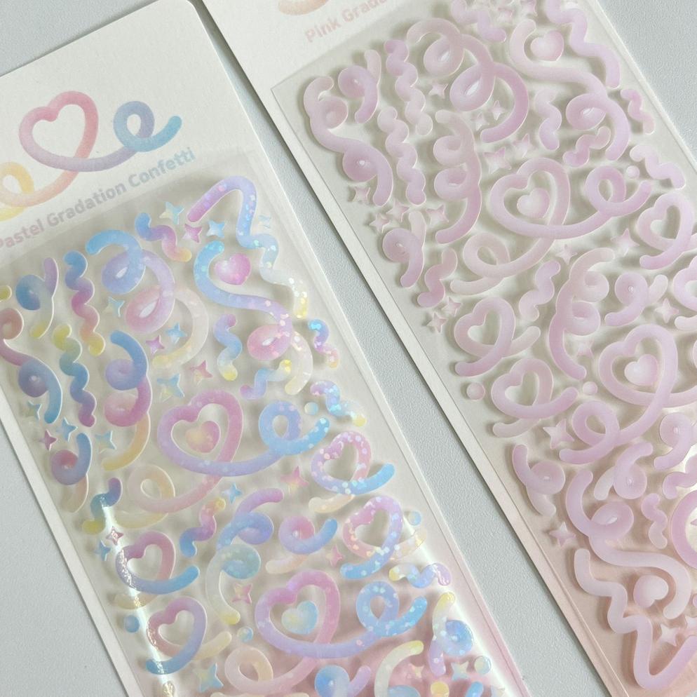 Terbaik Steve Gradient Confetti Stiker Heart Ribbon Journal Toploader Deco Material Sticker