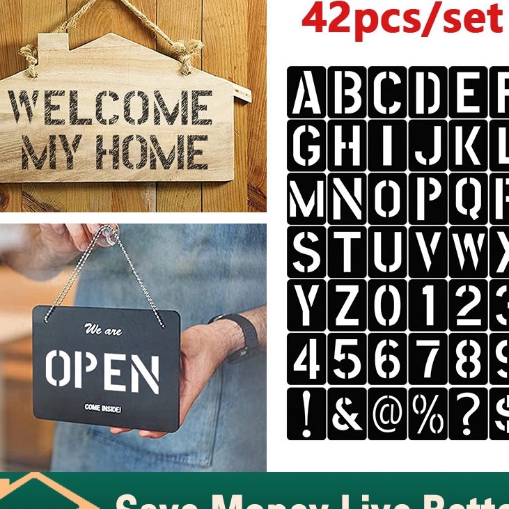 Terbaru 42PCSSet Cetakan Stencil Huruf Angka Custom Cat Semprot Lettering Stencil Set