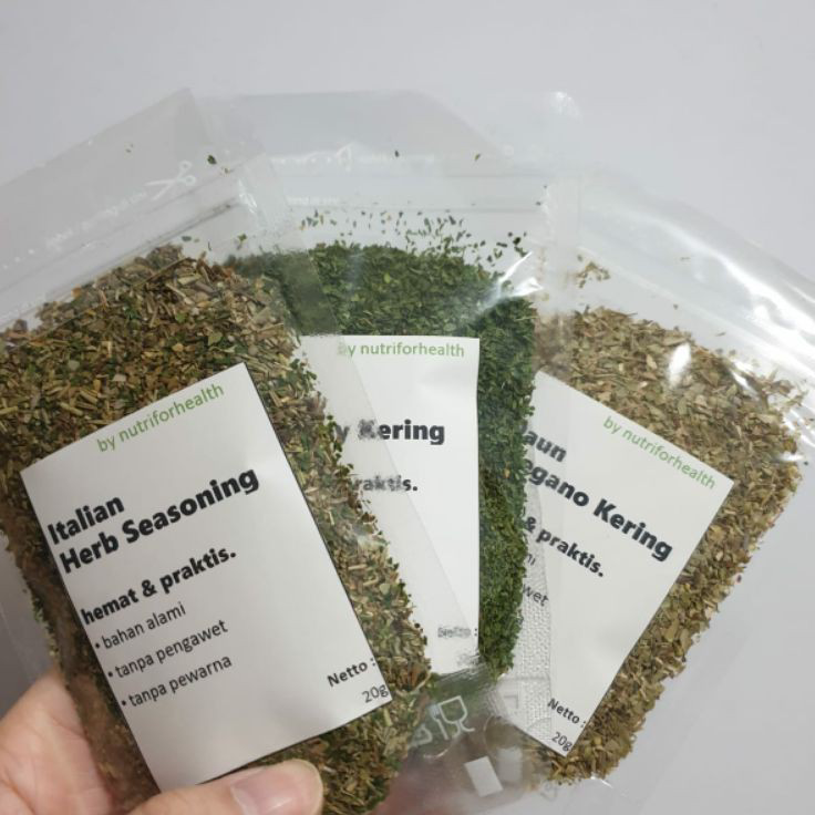 Terbatas REMPAH DAUN KERING PARSLEY / OREGANO / THYME / ROSEMARY / ITALIAN SEASONING / BASIL / SAGE / SALAM Diskon Promo SH-26-10-23 READY STOCK Dikemas dengan kemasan Ziplock Berat Bersih 20gr LEBIH HEMAT & PRAKTIS Bumbu dapur yang kami jual semua bahan alami, tanpa pengawet dan pewarna. Semua produk yg kami jual adalah produk FRESH dan BARU. KAMI HADIR UNTUK KEBUTUHAN DAPUR ANDA Kemasan lebih hemat dan praktis, jadi tidak perlu takut mubajir/expired. Umur simpan : 12 bulan setelah pembelian Simpan ditempat kering Tutup rapat setelah pemakaian PERHATIAN❗ Untuk orderan 1-2 pcs kami packing hanya menggunakan plastik polymailer, karena bukan barang pecah, kecuali digabungkan dengan barang lain. Mohon pada saat membuka paket JANGAN ditusuk dengan Cutter, tapi cukup robek sedikit plastiknya saja. Untuk orderan 3pcs atau lebih kami packing dengan Dus. Packingan kami pastikan aman, tapi jika ingin paket extra aman, kami menyediakan etalase khusus penambahan bubble wrap maupun dus, silakan di atc - Fast respon jam kerja Senin - Sabtu pukul 8.00 - 16.00, Minggu atau hari libur Off - Mohon mencantumkan warna/gambar/varian pilihan dan cadangannya (jika ada) di kolom pemesanan ya. Jika tidak mencantumkan pilihan, maka akan kami kirimkan sesuai stok yang ready!!! - Pengiriman pada Hari yang sama (malamnya). - Jika barang yang di pesan kosong dan tidak ada respon selama 1x24 jam maka akan di kirim secara random. - Periksa kembali NOMOR HP (TELP) & ALAMAT LENGKAP. Guna mempercepat dan memperlancar pengiriman. - BARANG YANG SUDAH DI BELI TIDAK BISA DI KEMBALIKAN. - Gudang kita ada di Beberapa Alamat Jabodetabek... Jadi pengiriman tidak selalu sesuai alamat toko ini yaaa.. >>>> MEMBELI = SETUJU
