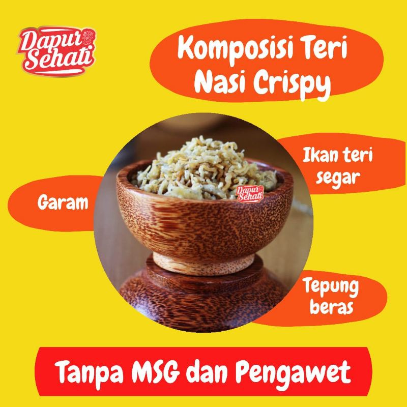Teri Crispy Dapur Sehati dibuat oleh salah satu produsen terkemuka yaitu Dapur Sehati. Teri crispy dibuat dari Teri yang masih segar yang diolah sedemikian rupa sehingga menghasilkan makanan kecil yang gurih, lezat serta kandungan gizi teri yang tinggi, menjadikan teri crispy ini tidak hanya renyah tapi juga sehat.