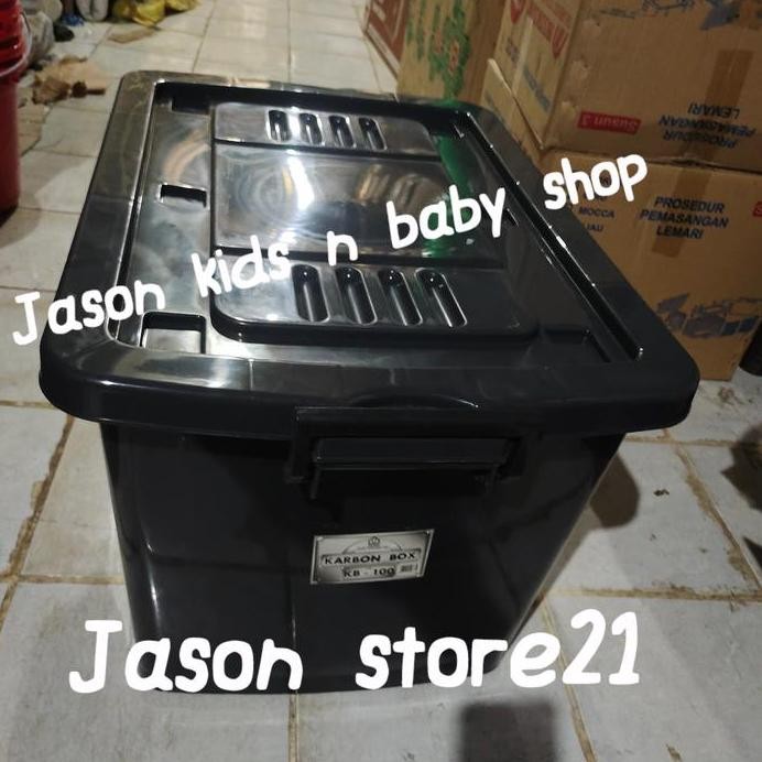 Box kontainer hitam 100 liter bahan tebal kualitas bagus,khusus ada 6 roda dimensi : 74 x 49 x T 43 cm. HS