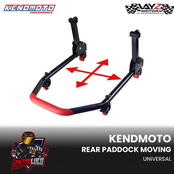 Rear Moving Paddock Kendmoto yang menggunakan material besi yang sangat kuat dan mampu menopang bobot motor hingga 1400cc serta dilapisi finishing powder coating sehingga memiliki daya tahan terhadap goresan dan karat yang lebih baik