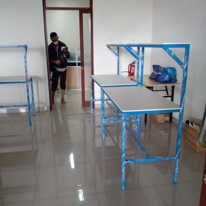 meja peking ukuran 150x60x150 dengan dudukan bubble wrap di bawah toptable..