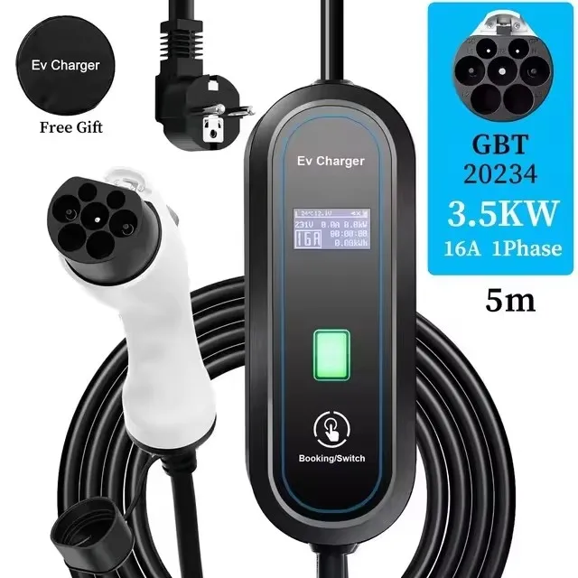 Портативное новое автомобильное зарядное устройство GBT Type 1 Type 2, переносное зарядное устройство для электромобилей 16 А с кабелем 3,5 м, 5 м, регулируемая по току, автомобильная зарядная станция