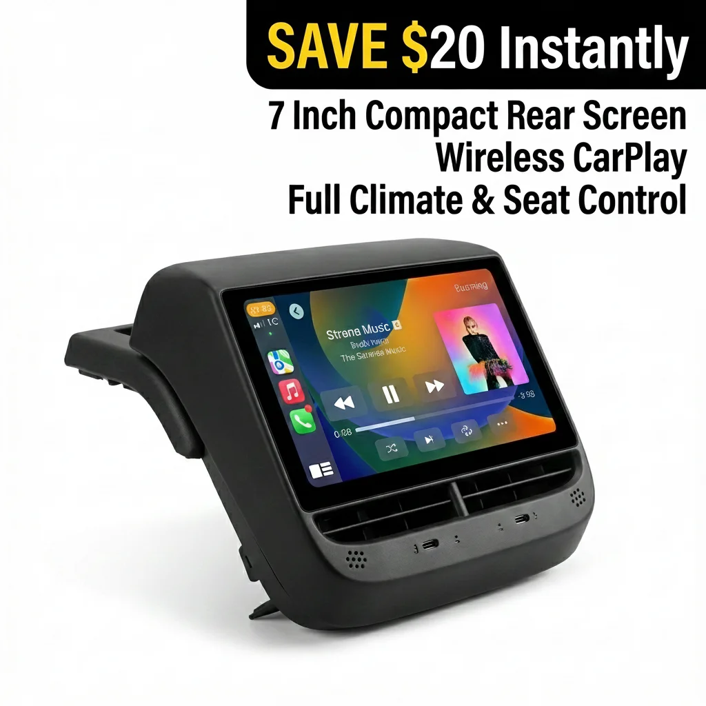 Tesla Model 3 Y 2019-2024 7 Inch Rear Entertainment Screen Wireless CarPlay Android Auto AC Climate Seat Heating Control Display