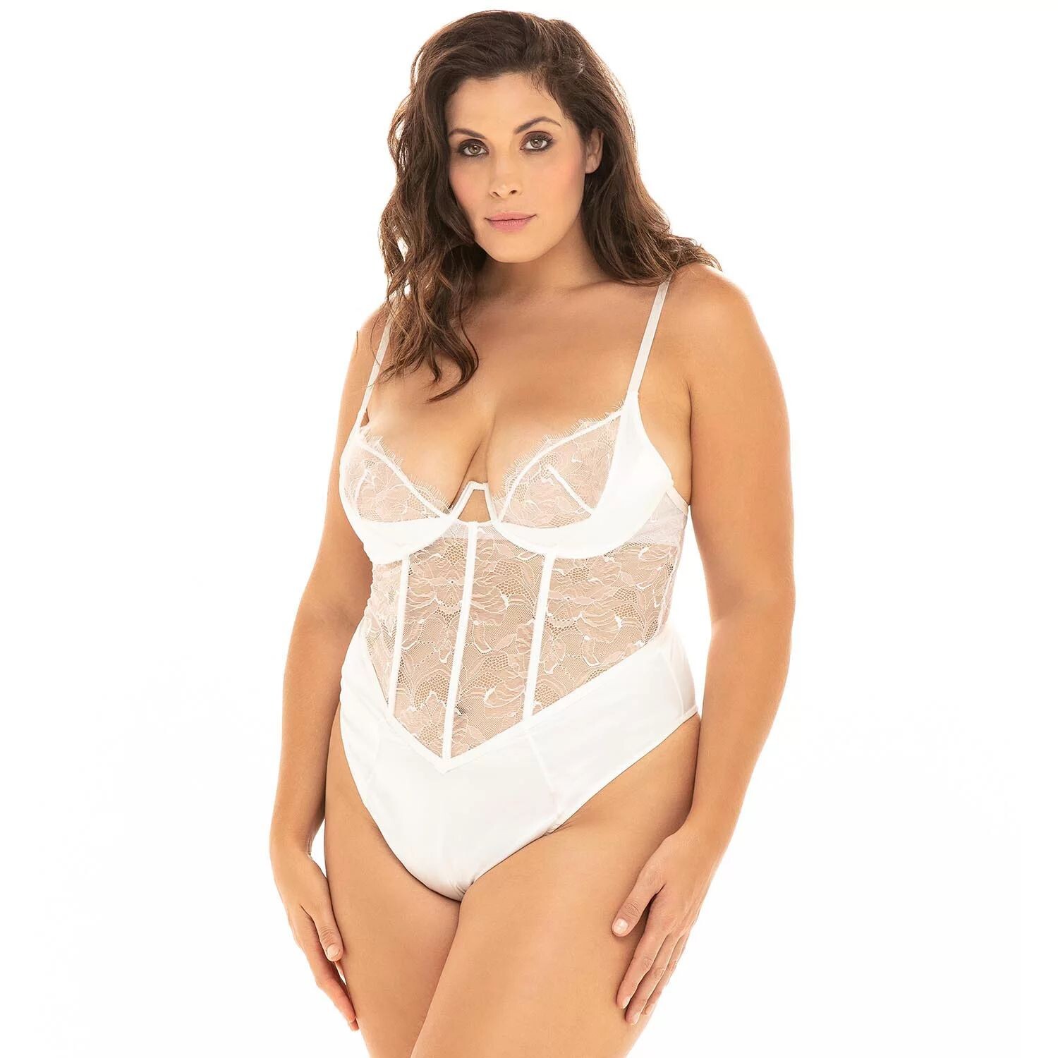 Боди больших размеров Oh La La Cheri Carmella без подкладки с кружевными и атласными вставками 51-11566X Oh La La Cheri