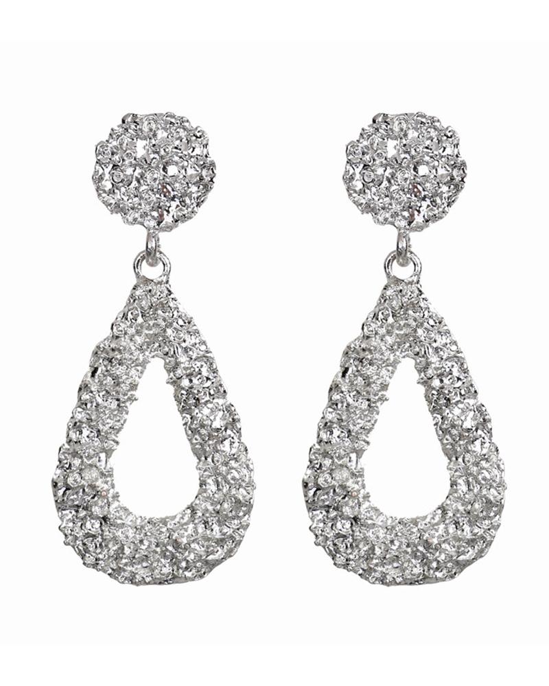 Textured Studded Teardrop Pattern Earring, Silver