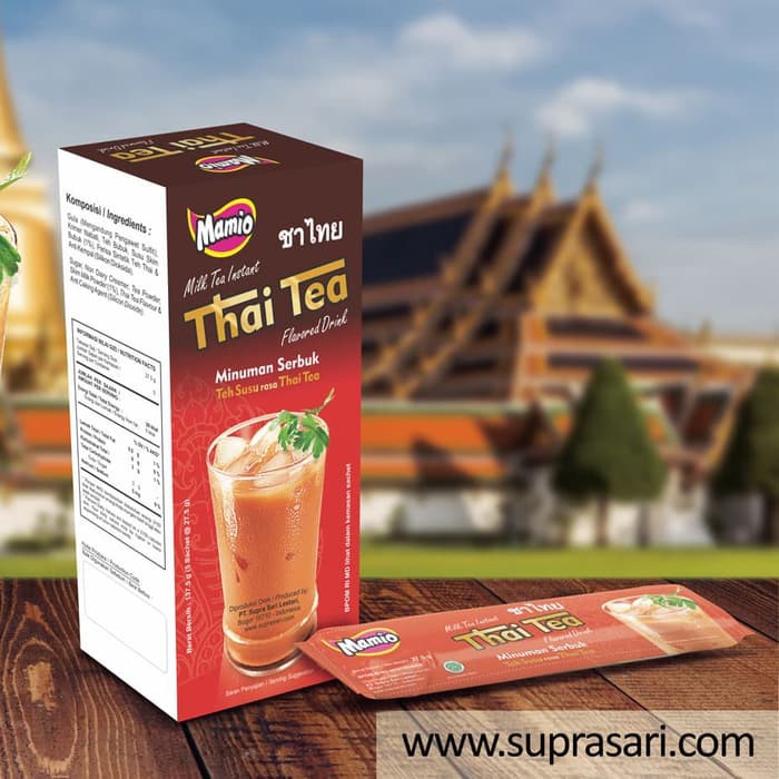 Minuman Hangat : Larutkan 1 Sachet Mamio Thai Tea ke dalam 150 ml air hangat, Aduk dan Sajikan