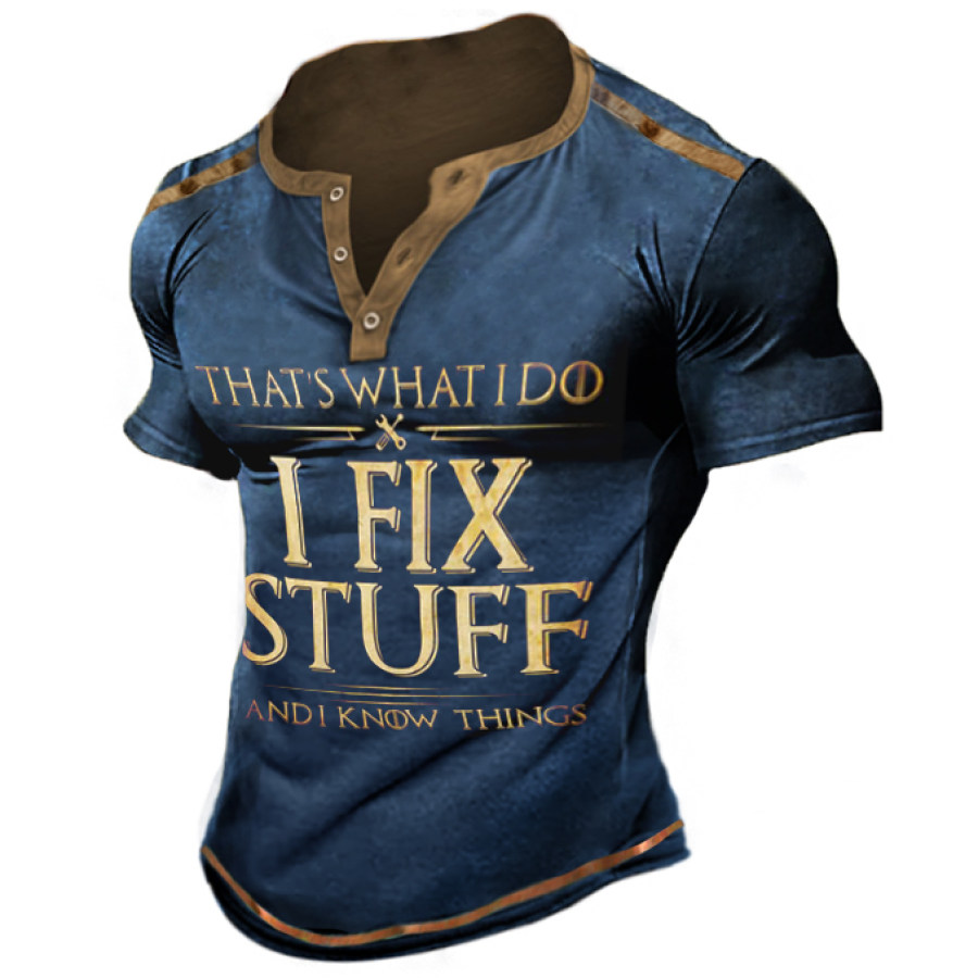That's What I Do I Fix Stuff And I Know Things Tactical Henley Shirt