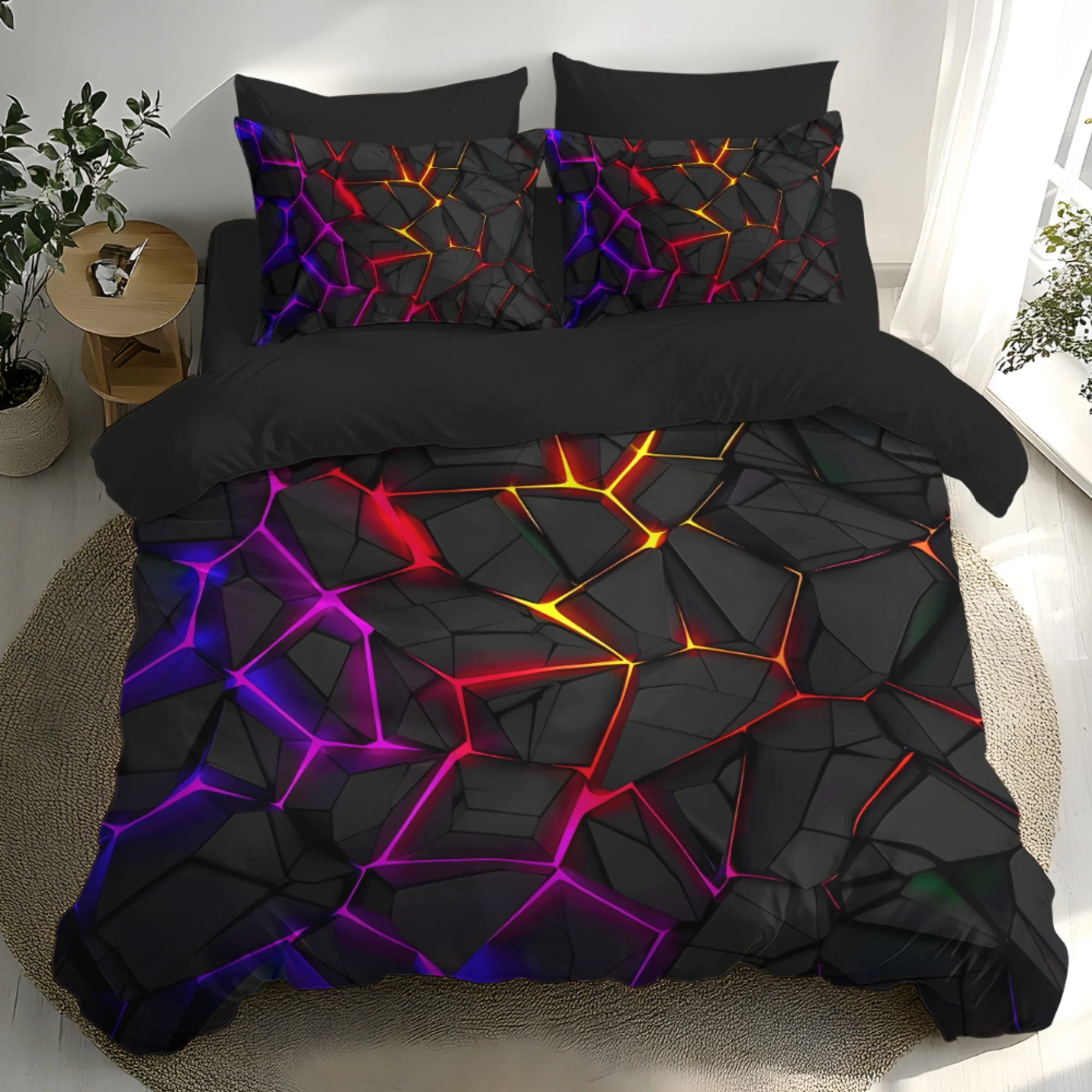 The Design Theme Bedding Set Features a Pattern Colorful Light Duvet Cover Set, Using a 3D Ultra-Soft Brushed Digital Printing