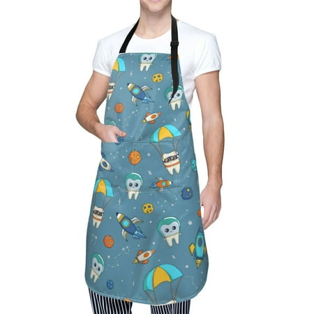 Kdxio Teeth Cosmonaut Apron with Pockets Adjustable Kitchen Aprons for Men Women Waterproof Aprons for Cooking Drawing Crafting Baking Household Cleaning