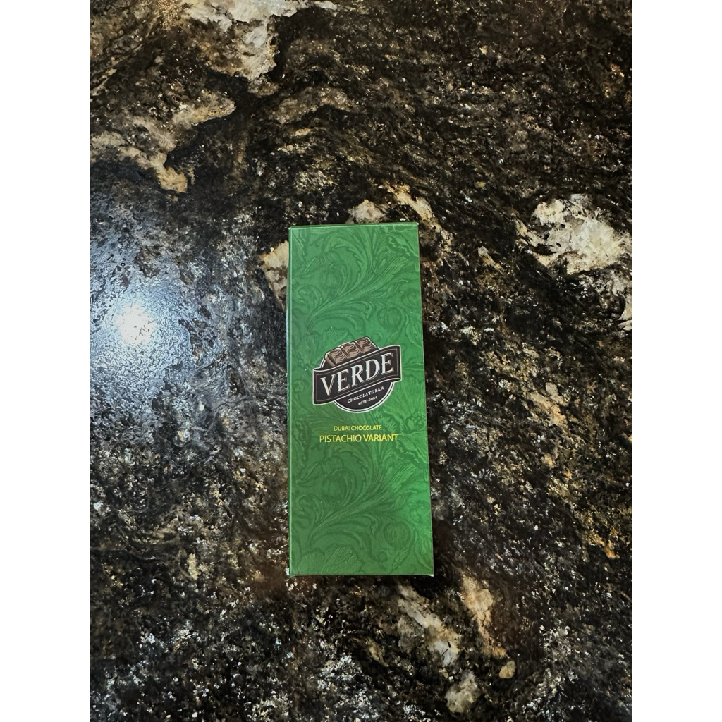 Cokelat susu dipadukan dengan selai pistachio yang gurih dan tambahan kunafa yang memberikan tekstur renyah
