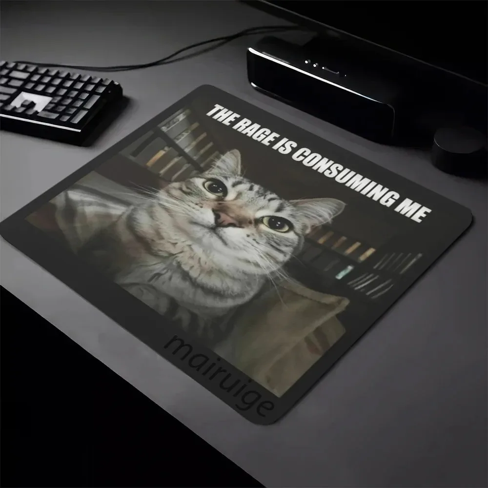 The Rage is Consuming Me Cat Meme Mouse Pad Square Non-Slip Rubber Base Game Pads Computer Accessory for Cats Lover Office Home