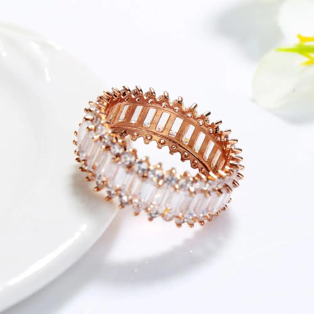 CZCITY Fine Jewelry 925 Sterling Silver Knot Infinity Ring 14K Gold Plated Zircon Pave Set Stackable Simple Dainty Chain Rings