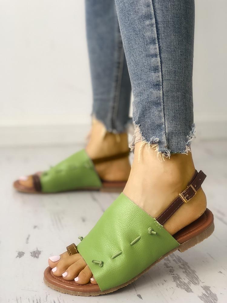 Thread Design Toe Ring Buckled Flat Sandals
