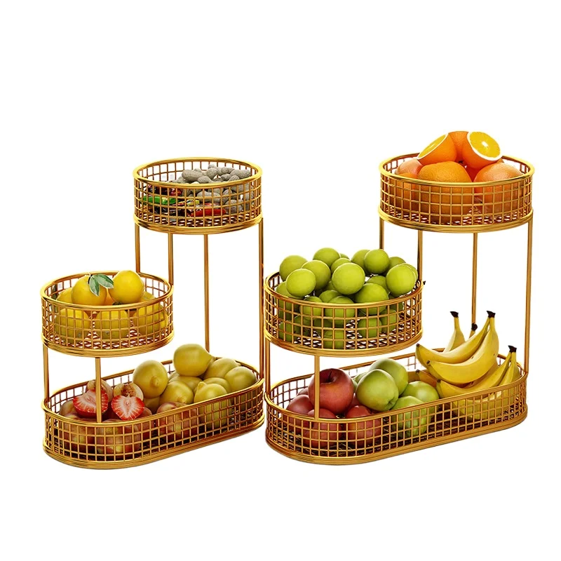 Three Layer Fruit Basket, Circular Metal Fruit and Snack Rack, Living Room, Kitchen, Dining Table Fruit Tray