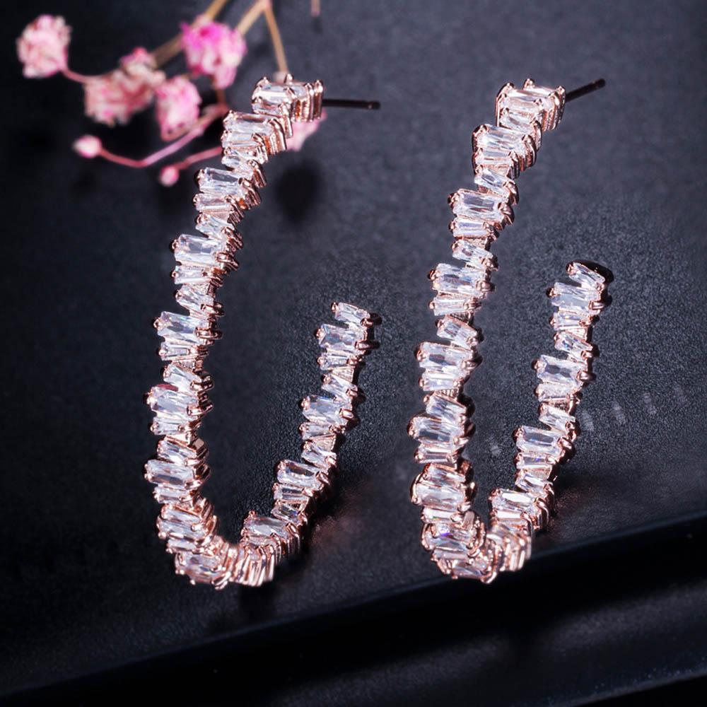 ThreeGraces блестящие нерегулярные багетные серьги-кольца с фианитами и кристаллами розового золота для женщин, танцевальные вечерние украшения ER115