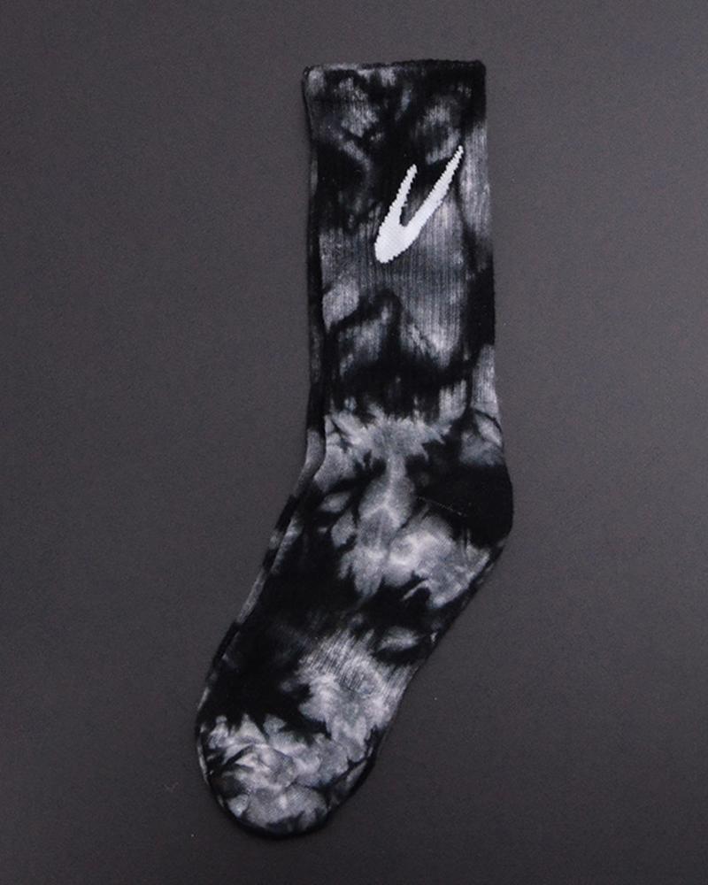 Tie Dye Print Check Mark Pattern Sporty Socks, Style2