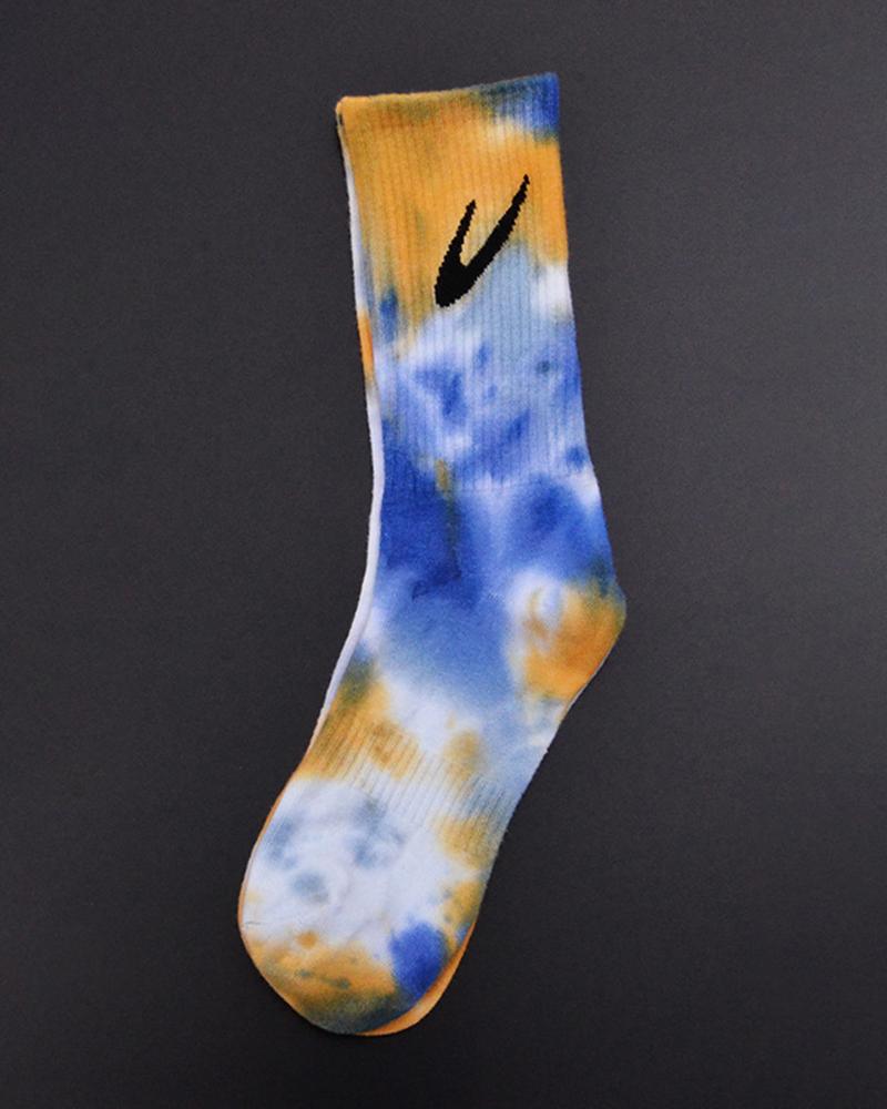Tie Dye Print Check Mark Pattern Sporty Socks, Style3
