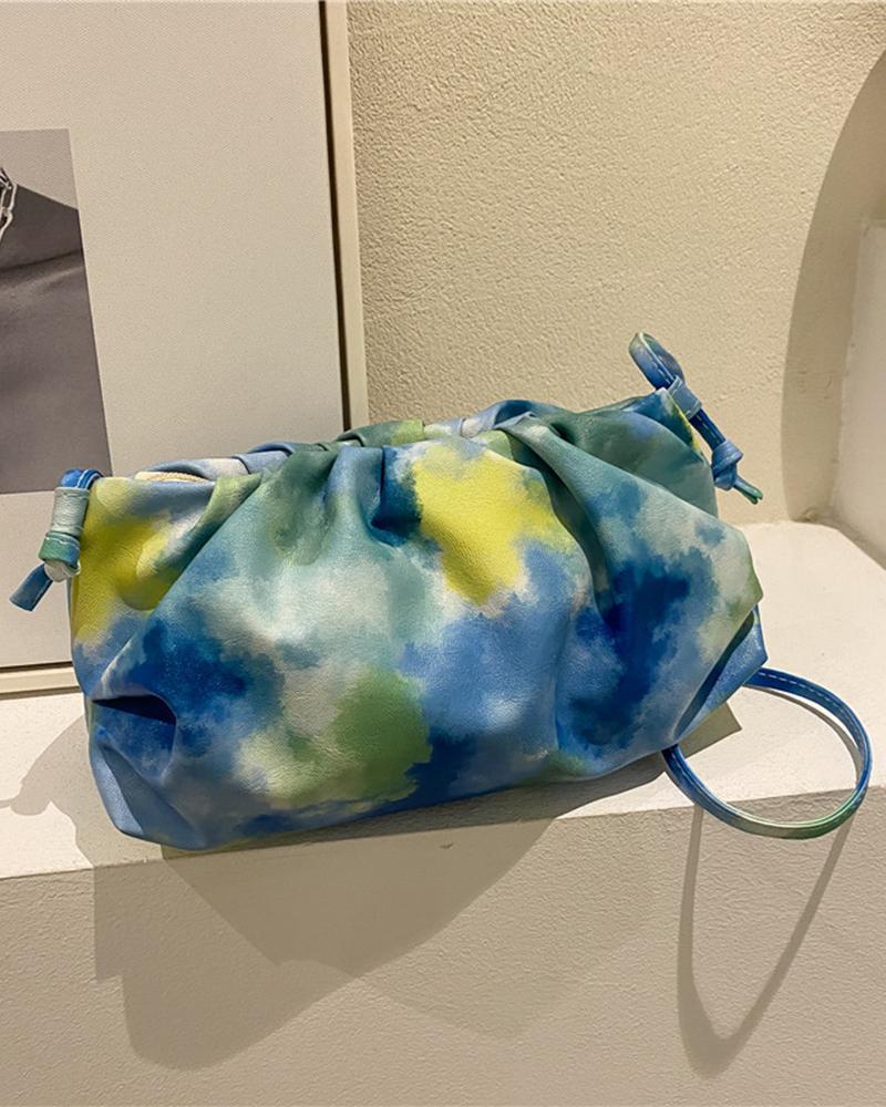 Tie Dye Print Ruched Shoulder Bag, Blue