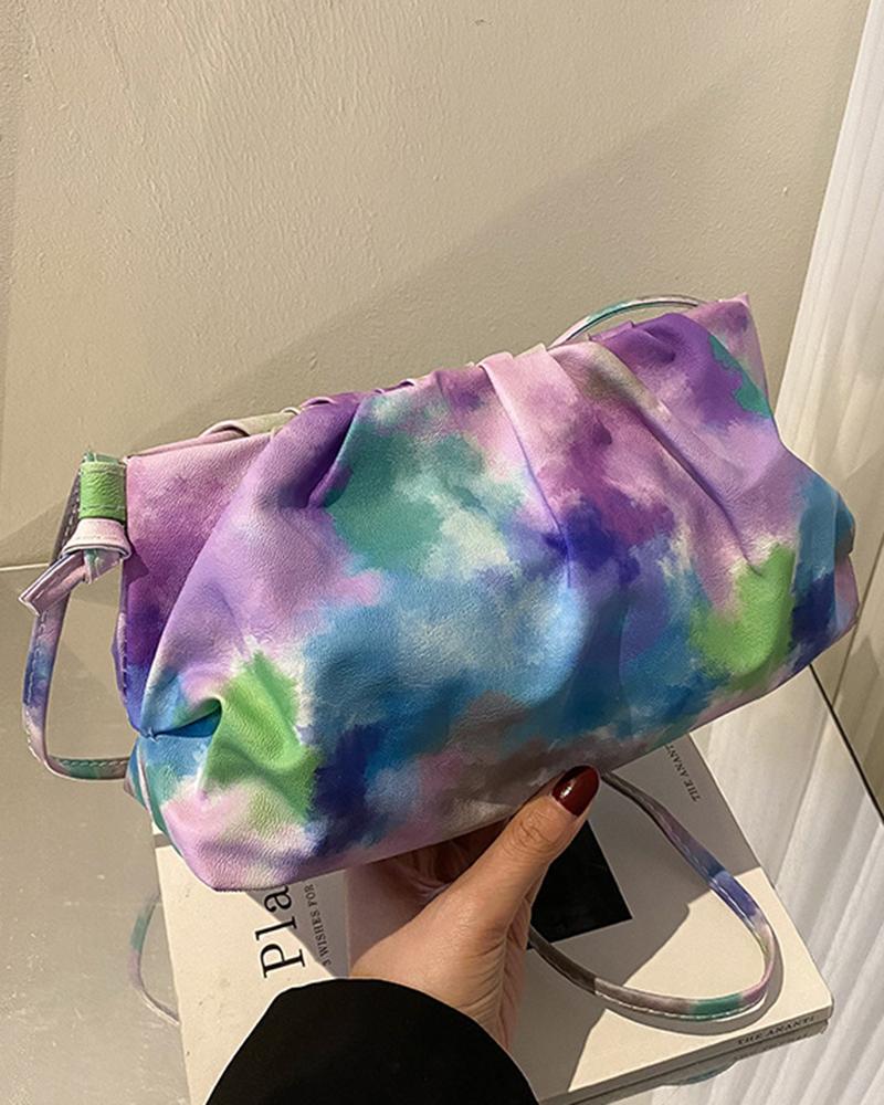 Tie Dye Print Ruched Shoulder Bag, Purple