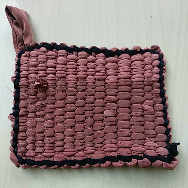 Timpal untuk mengangkat panci, wajan, kekenceng agar panas tidak mengenai tangan. bisa juga buat lap meja dll. dibuat dengan cara dirajut munual dengan tangan dan bantuan alat jarum.