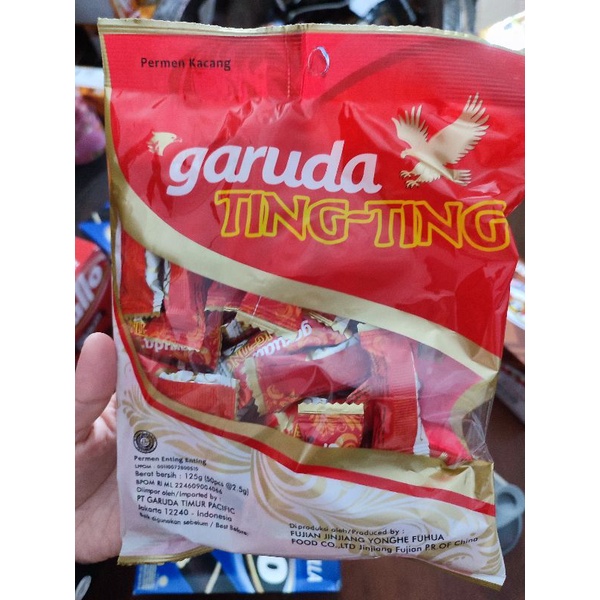 Ting-Ting Garuda 125gr merupakan permen salut kacang manis yang diproses dengan higienis sehingga terjaga kualitasnya. Ting-Ting Garuda nikmat dijadikan cemilan sembari mengisi waktu luang.