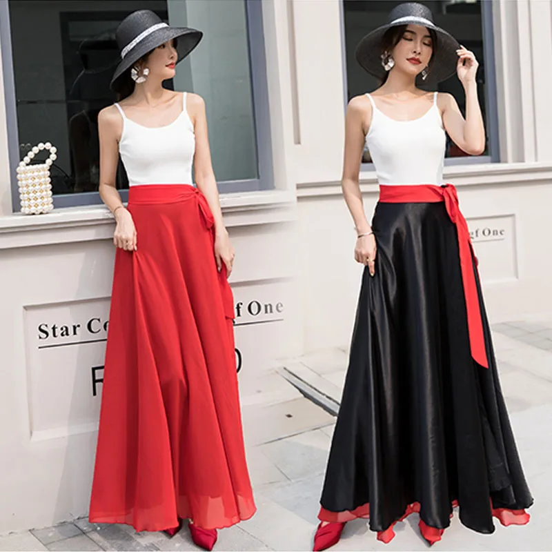 TingYiLi цельные шифоновые шелковые атласные юбки с поясом для женщин Летняя Пляжная Юбка с запахом в стиле бохо длинная юбка в Корейском стиле ...