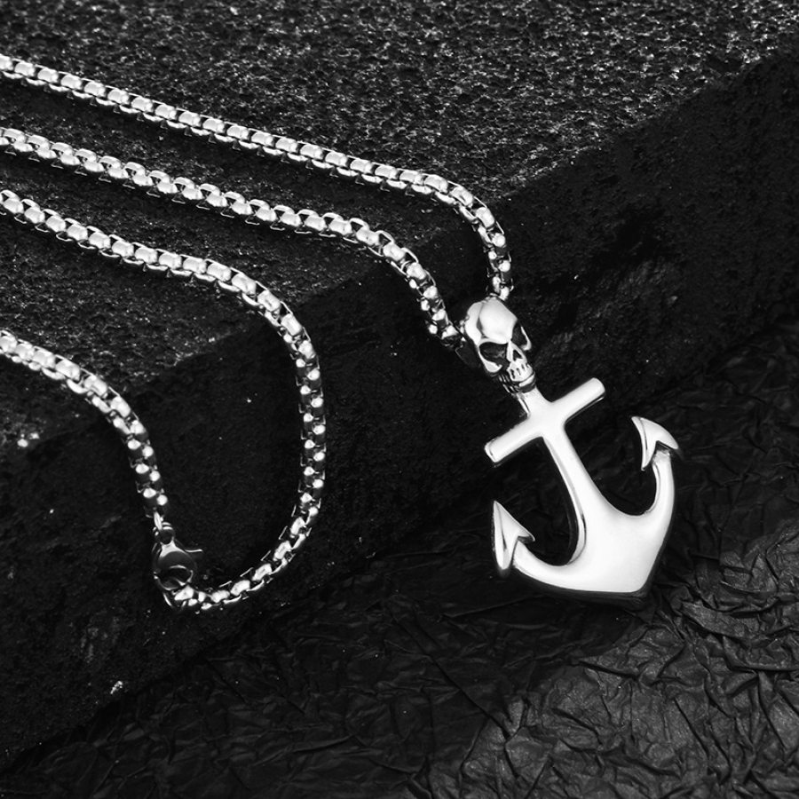 Titanium Steel Skull Cross Anchor Pendant Necklace