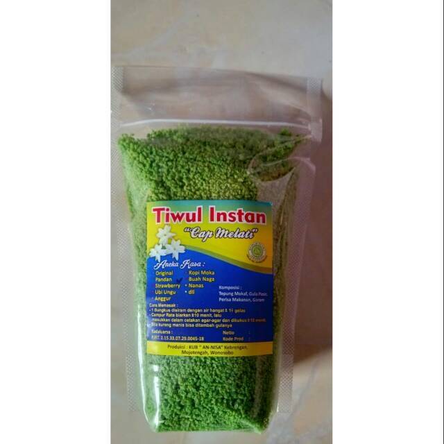 Tiwul singkong instan pengganti nasi merupakan makanan khas masyarakat Jawa. Terbuat dari singkong yg diselep,diayak dan dimasak lalu dikeringkan. Sehingga produk ini cukup awet bila disimpan dengan benar.