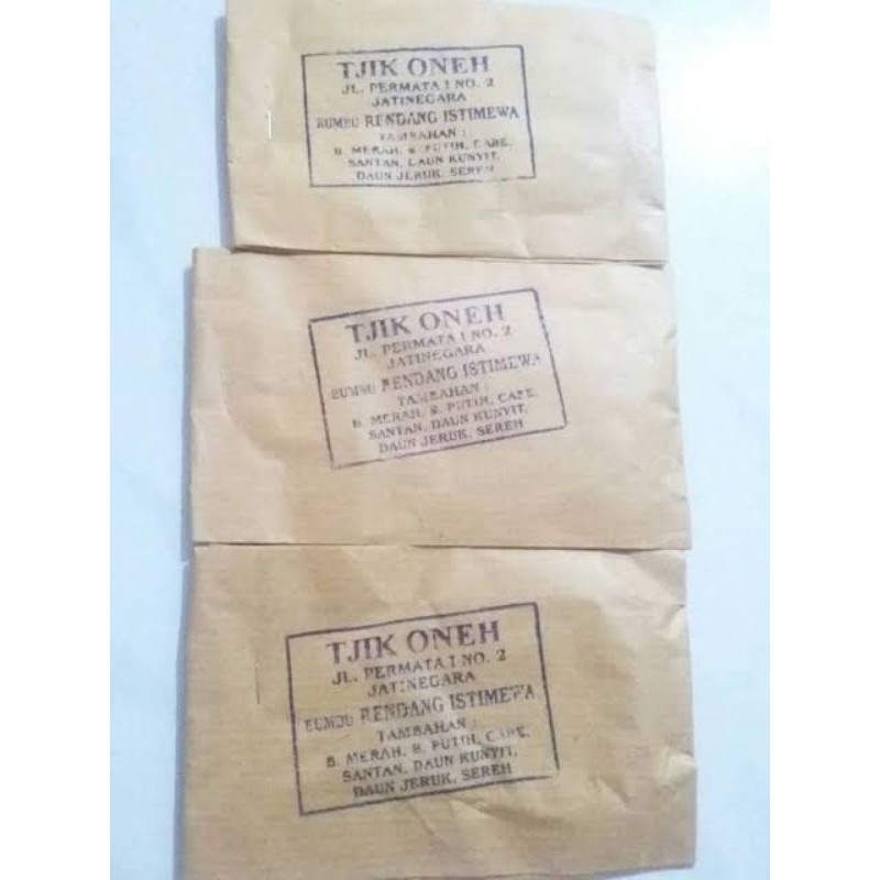 Tjik Oneh Bumbu Rendang Istimewa tambahan : bawang merah bawang putih cabe santan daun kunyit daun jeruk sereh netto : 9 gram