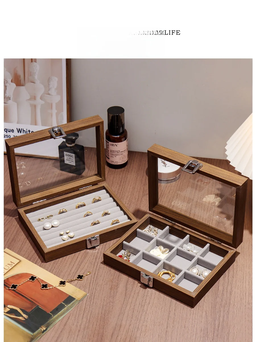 Tlife Sumora Walnut Patterned Jewelry Box with Cover Dustproof Jewelry Storage Box Creative Retro Sle Wood Material for Bed...