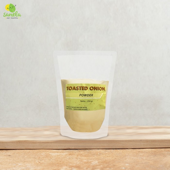 Toasted Onion Powder/Bubuk Bawang Bombay Panggang adalah bumbu yang dibuat dari bawang bombay yang telah dicincang, dikeringkan, lalu disangrai.