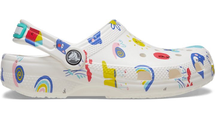 Little ones will love the fun back-to-school theme — a doodle print graphic, plus a blank nameplate on the backstrap for personalization with their name and other details. The unique graphic and nameplate make these fun to wear at preschool, and Croslite™ foam construction keeps them light and easy to wear. Grounded in comfort, spiked with personality. Toddler Classic Doodle Print Clog Details: Doodle print graphic Blank name plate on backstrap Incredibly light and fun to wear Ventilation ports add breathability and help shed water and debris Easy to clean and quick to dry Pivoting heel straps for a more secure fit Customizable with Jibbitz™ charms Iconic Crocs Comfort™: Lightweight. Flexible. 360-degree comfort.