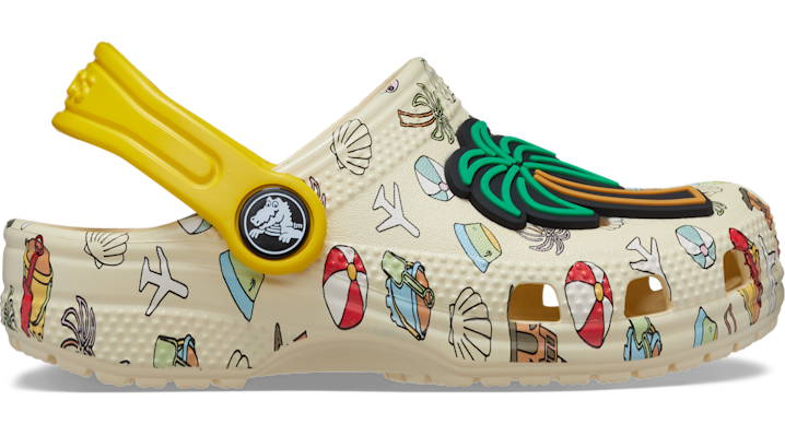 Getaway style made for tiny toes. Our Toddler Classic Spring Break Clog features a tropical print and included beachy-themed Jibbitz™ charm to top off the look. No matter the destination, these Classics are the perfect pair to pack. Toddler Classic Spring Break Clog Details: Tropical print Includes 5 Jibbitz™ charms Incredibly light and fun to wear Ventilation ports add breathability and help shed water and debris Easy to clean and quick to dry Pivoting heel strap for a more secure fit Iconic Crocs Comfort™: Lightweight. Flexible. 360-degree comfort.