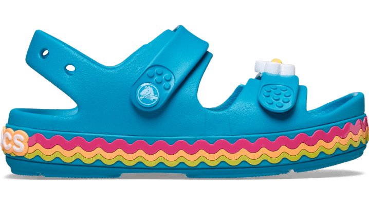 Let your little ones play the day away in the Toddlers’ Crocband™ Cruiser Ricrac Sandal. This everyday sandal allows for security on the go from the playground to the pool. In this version, they’ll enjoy a nostalgic ricrac design on and fun flower embellishments on the straps. Toddler Crocband Cruiser Ricrac Sandal Details: • Nostalgic ricrac design on band • Fully molded Croslite™ construction with toe bumpers • Two-strap upper • Heel and ankle strap for a more secure fit • Dual hook and loop upper closures with hook and loop straps • Light and easy to wear • Iconic Crocs Comfort™: Lightweight. Flexible. 360-degree comfort.