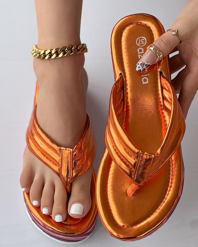 Toe Post Flip Flops Platform Summer Sandals, Orange