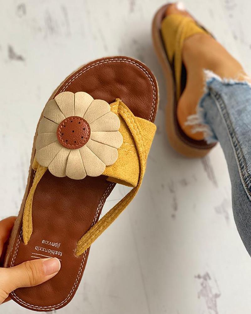 Toe Post Flower Design Flat Sandals, Yellow