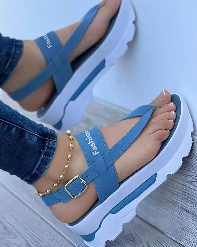 Toe Post Letter Pattern Buckled Platform Sandals, Blue