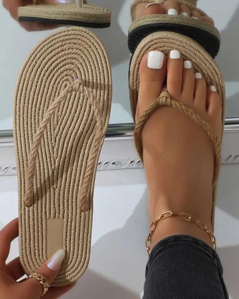Toe Post Woven Flax Flip Flops, Apricot