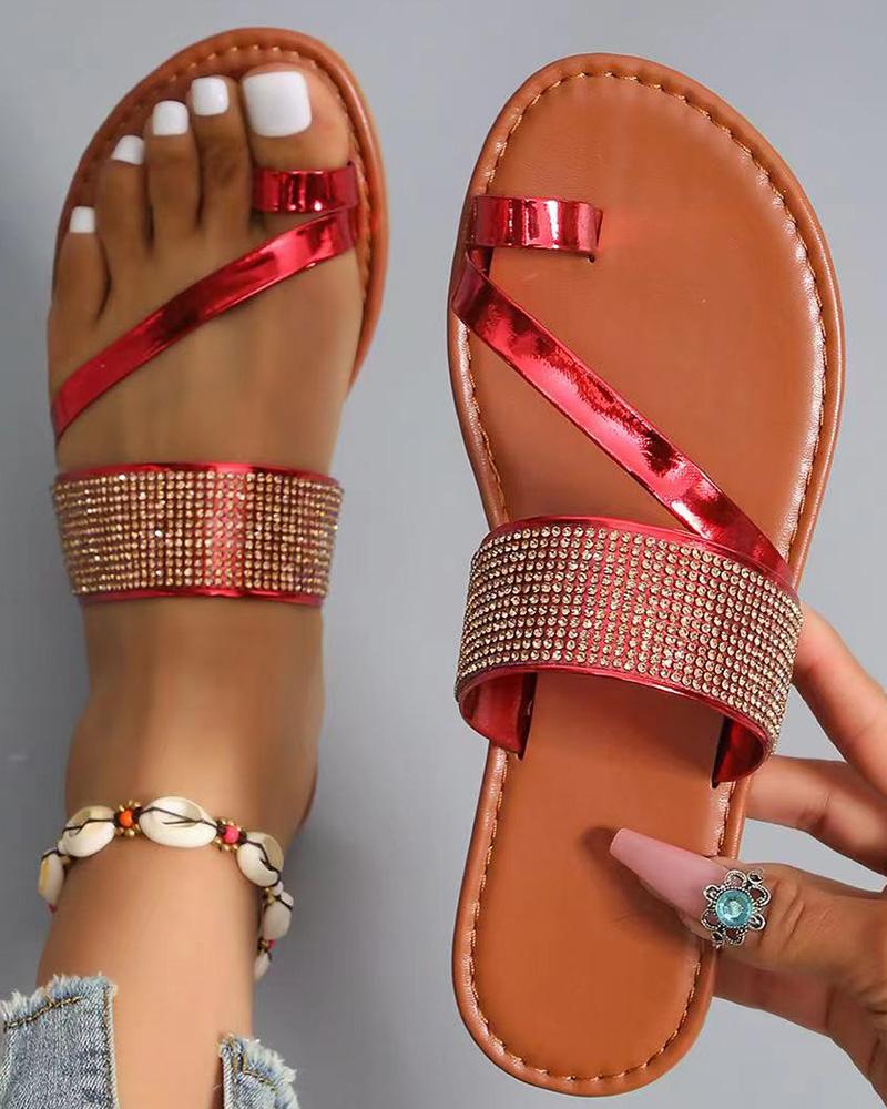Toe Ring Rhinestone Beach Flip Flops, Red