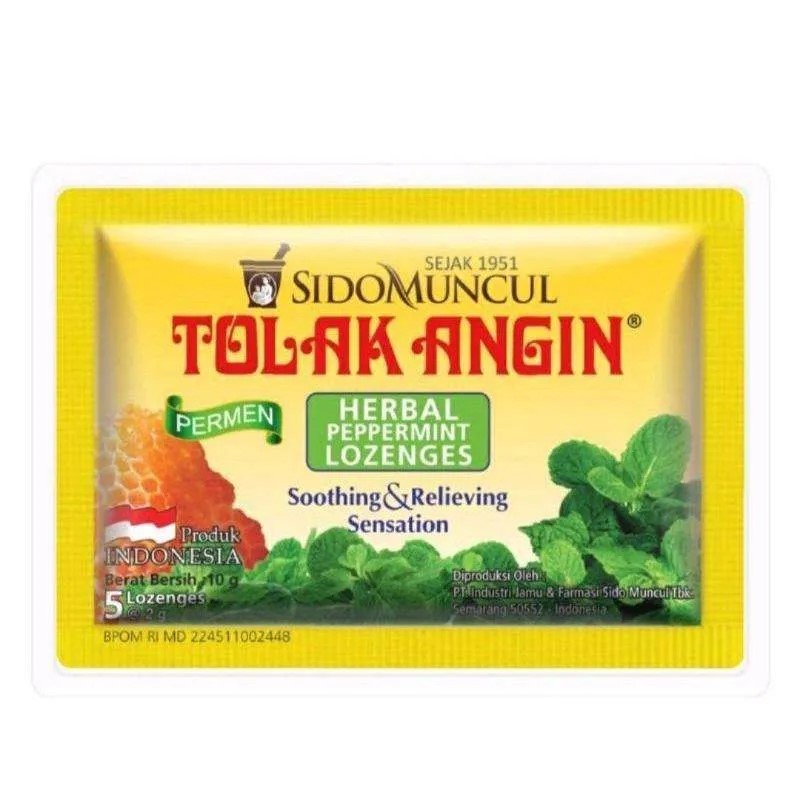 Tolak angin permen herbal terbuat dari tumbuh-tumbuhan pilihan dan madu memberi sensasi melegakan tenggorokan . baik di konsumsi untuk perjalanan jauh