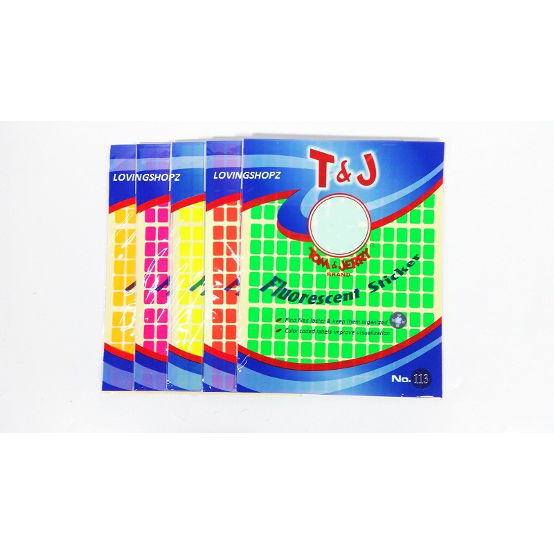 Label Tom & Jerry Fluorescent No.113, ukuran 9 X 12 mm, isi 5 lembar, per lembar 210 sticker, per bungkus 1050 sticker