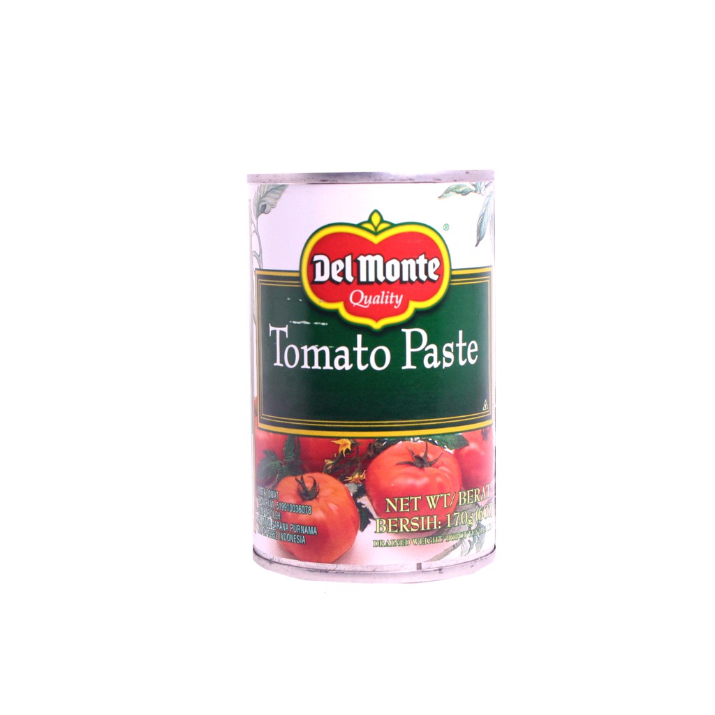 Tomato Paste Del Monte kemasan kaleng isi 170ml memiliki kelezatan rasa Tomat 100% alami pada segala resep masakan Anda. Terbuat dari tomat yang matang secara alami. Dipacking pada puncak kematangannya Pasta tomat untuk pizza, lasagna, saus masakan Eropa dan lain lain .