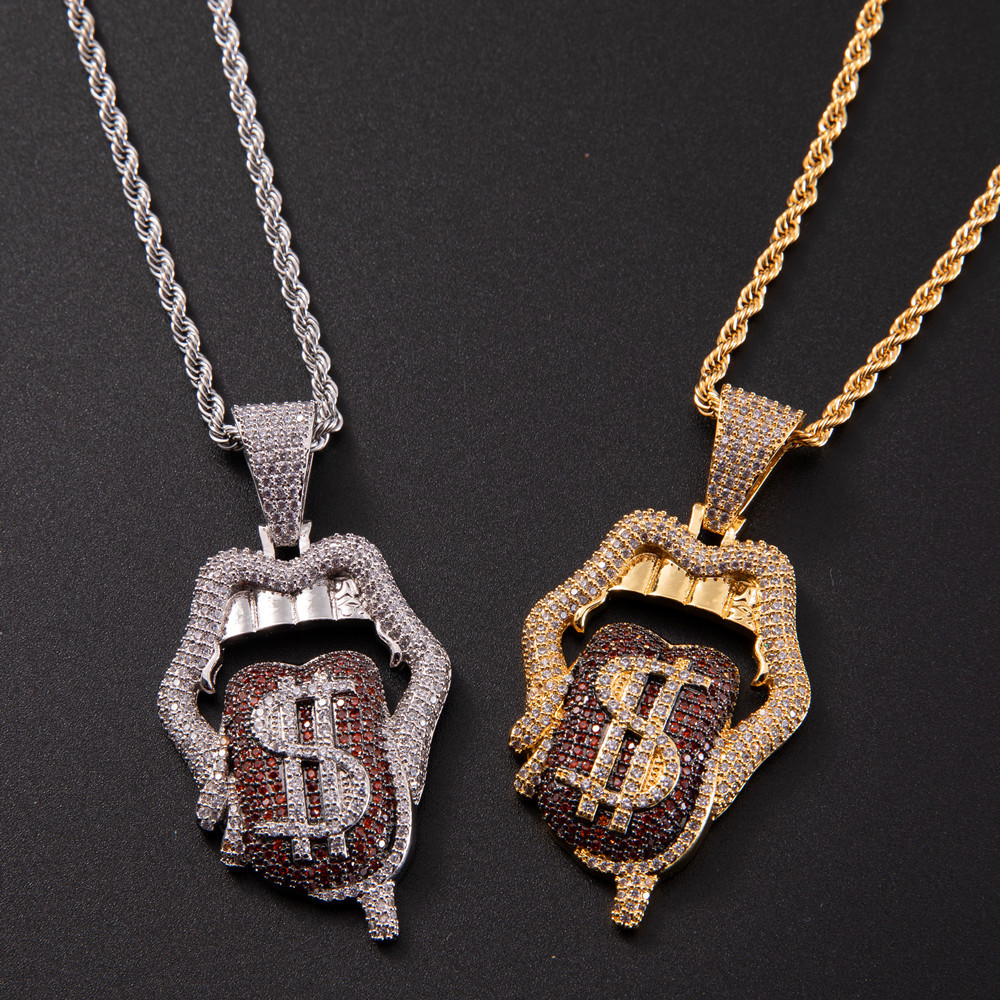 Tongue Lips Pendant In The $ Cubic With Rope Chain Men Women Hip Hop Necklace Jewelry Gift