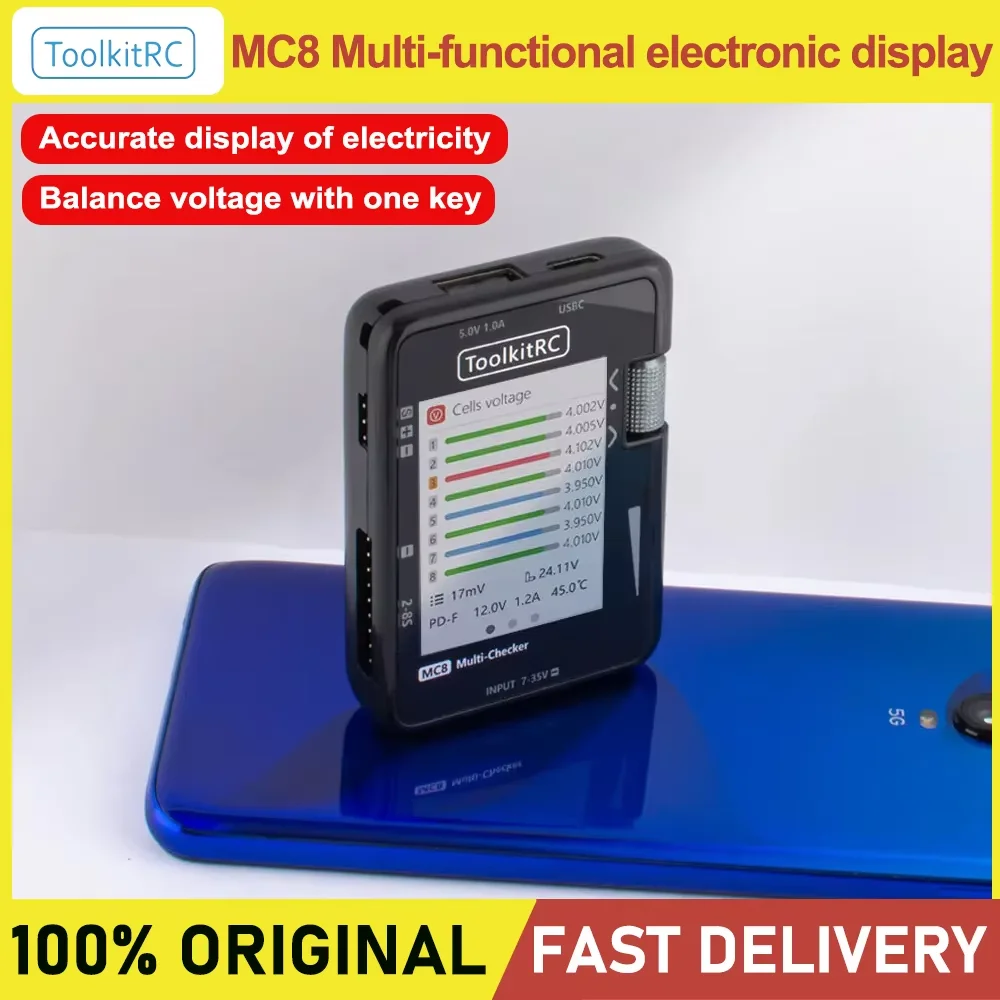 ToolkitRC MC8 LCD Display Digital Battery Capacity Checker Balancer ESC Servo Tester for LiPos Battery Tester Tool
